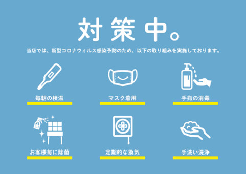- 若杉鋼材はお客様・社員の健康と安全ならびに公衆衛生を考慮し、以下の対策を行っております。